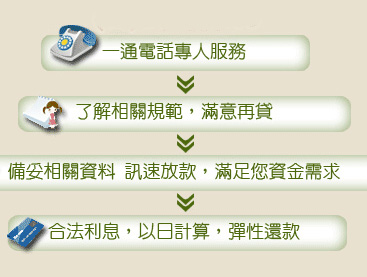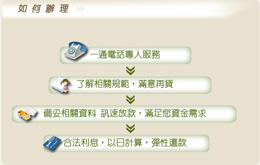 - 期限:最短3個月,最長5年,讓您輕鬆按本月息攤還